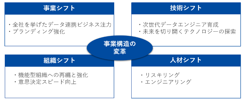当社では、事業構造の変革を推し進めるにあたり、「4つのシフト」を行っております。