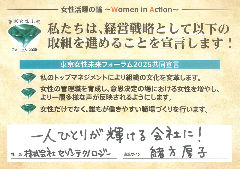 今後、東京女性未来フォーラムの共同宣言に賛同する各社とのネットワークも活用しながら、さらなる取組みを推進してまいります。