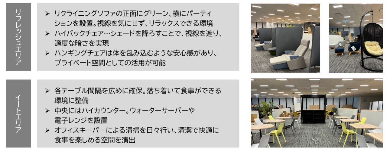 全社員ミーティングでの社員投票を経て、心から休める「リフレッシュエリア」と、落ち着いて食事ができる「イートエリア」からなる「MOV SPOT」をOPENしました。